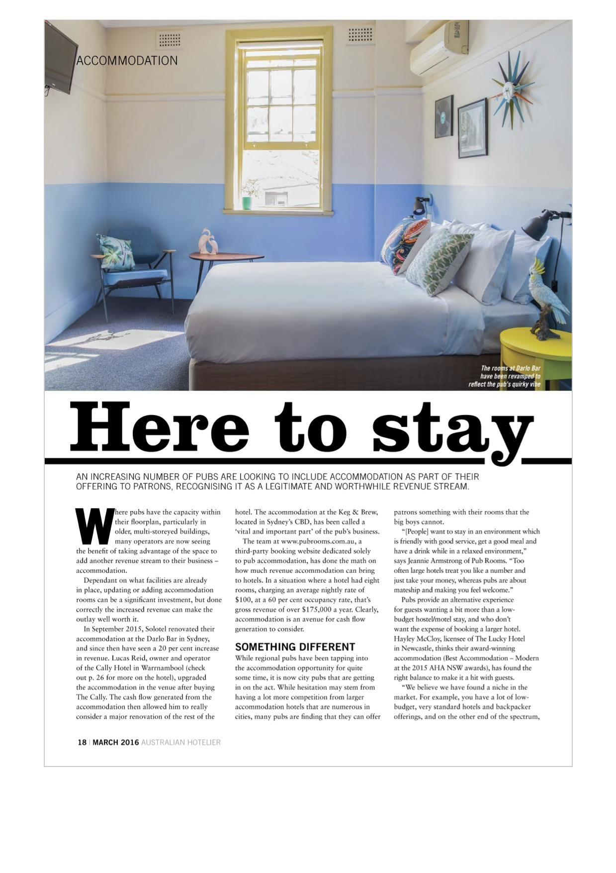 Pub Rooms in the MediaAustralian Hotelier Magazine March 2017 Australian Hotelier Article - March 2017 p1 Australian Hotelier Article - March 2017 p2Australian Hotelier Magazine March 2016 Australian Hotelier, PR Article - MARCH 2016 Australian Hotelier, PR Article -p2 Australian Hotelier, PR Article - p3 Australian Hotelier, PR Article -p4Pubtic eMag May 2016 pubtic eMag May page 15-18 2016AHA Editorial October 2015